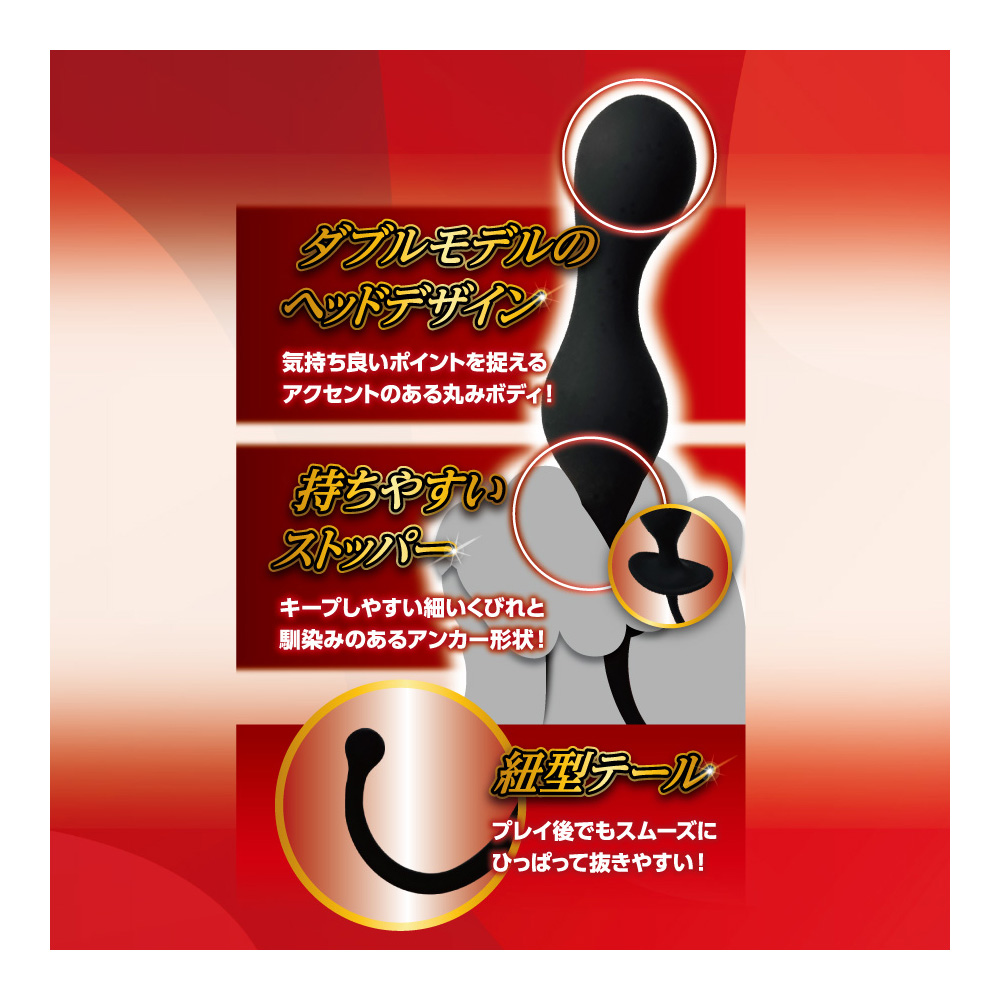 抜きやすい!挿れやすい!ストレスなく楽しめる!だから、気持ち良い!! 使いやすさを最重視したア●ルプラグがここに新登場!つるんっとしたカーブ形状は、スムーズな使用感に。鍔のようなアンカーデザインは、必要以上に奥へ行かないストッパーに。くるりと回るしっぽのような紐は、快適な抜きやすさに。美しいボディラインは、使いやすさを追求したデザインに。使用時のストレスを減らすことで、気持ち良さに集中できるア●ルプラグを目指しました。本体素材には、高品質なシリコン素材を仕様。スベスベでなめらかな質感は、触るだけでも気持ち良さです。「ダブル」は、パンチのあるアクセントな快感を楽しめる、ふたつの膨らみモデルとなっています。使いやすいから、楽しめる。抜きやすいから、気持ち良い。洗練されたシルエットによる快感をお楽しみください。