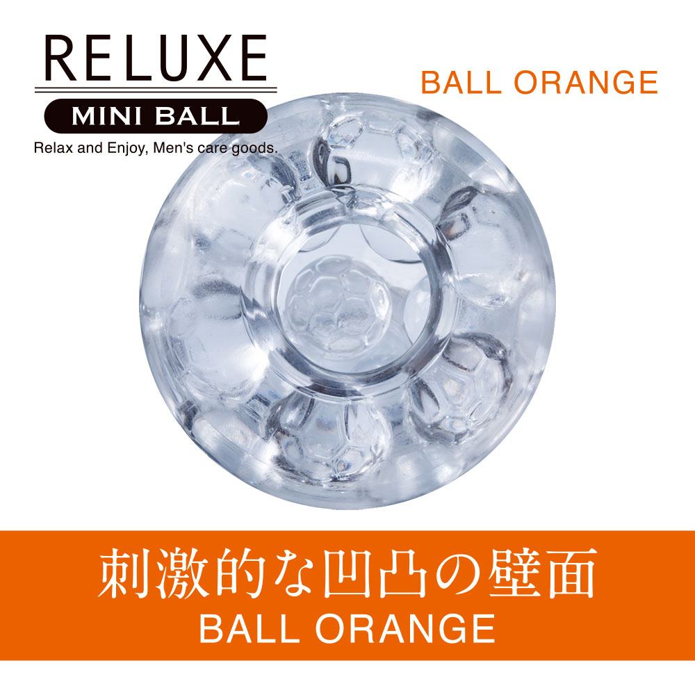 あの人気商品リラクゼがミニサイズのボール型になって登場!小型ながら、しっかりとした感触をお楽しみいただけます。このBALLORANGEは多面的に配された丸い突起が大胆な刺激を生み出す形状です。全面からボール状の突起が刺激を与え、ワイルドな感触が楽しめるでしょう。前作に引き続き、クリアなボディは見た目にも美しく、自らのものが透けて見える淫靡な効果が期待できます。また使用後に水洗いする事で、繰り返しお使いいただけます。リラクゼ・ミニボールをお楽しみください。