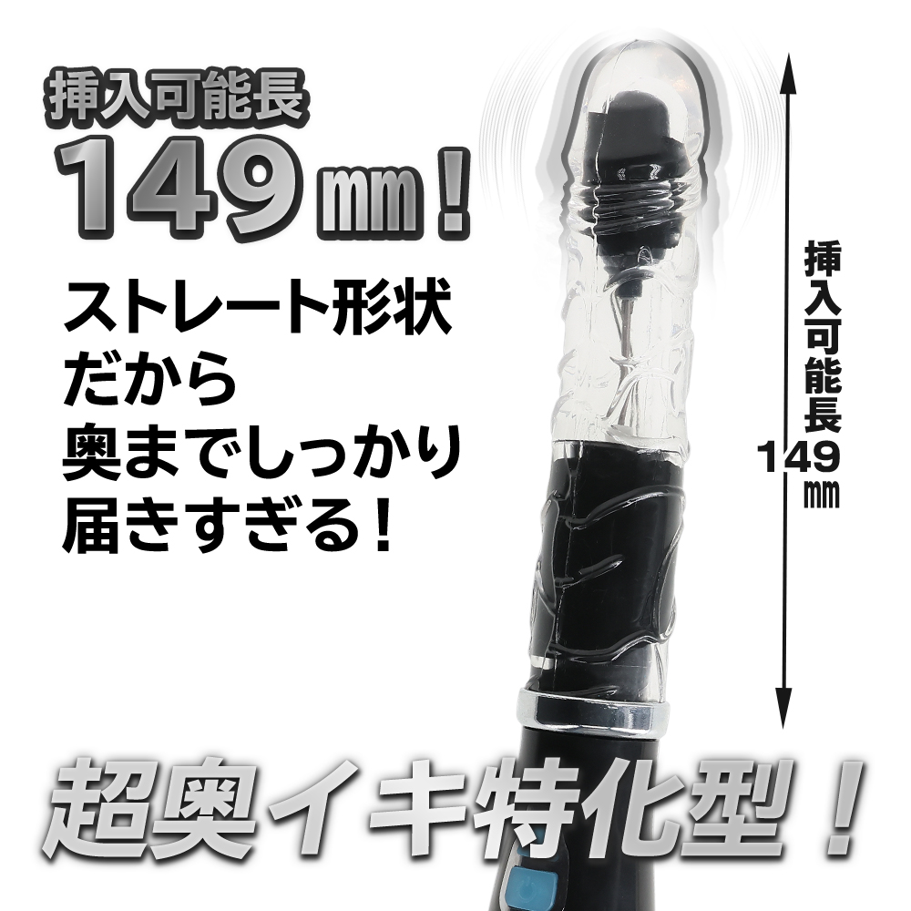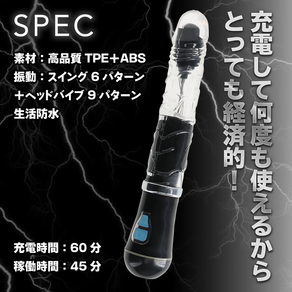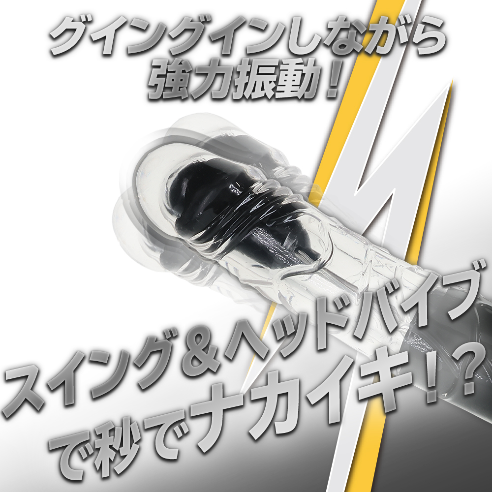 バッチリイケる!イキすぎちゃうバイブシリーズ『イキすぎバイブ』登場!好みに合わせてギミックをチョイス出来ます。奥まで挿入出来るストレート形状はそのままに、スイングアクションにヘッド振動ギミックをプラスしました。グイングイン、スイングで掻き回しながらさらにヘッドバイブによる振動刺激で中イキ度大幅アップ!アクションパターンはスイング6パターン、ヘッドバイブが9パターンとお好みに合わせて楽しめます。G責めも奥イキも強い刺激が欲しい方にピッタリの一本物バイブです。高品質なリチウムバッテリーによるハイトルクアクションを実現!60分の充電で最大45分の連続使用が可能です。(使用環境により大幅に増減します。)リアルな高品質TPE素材に計算されたサイズ感。全てがウルトラスタンダードなバイブです。