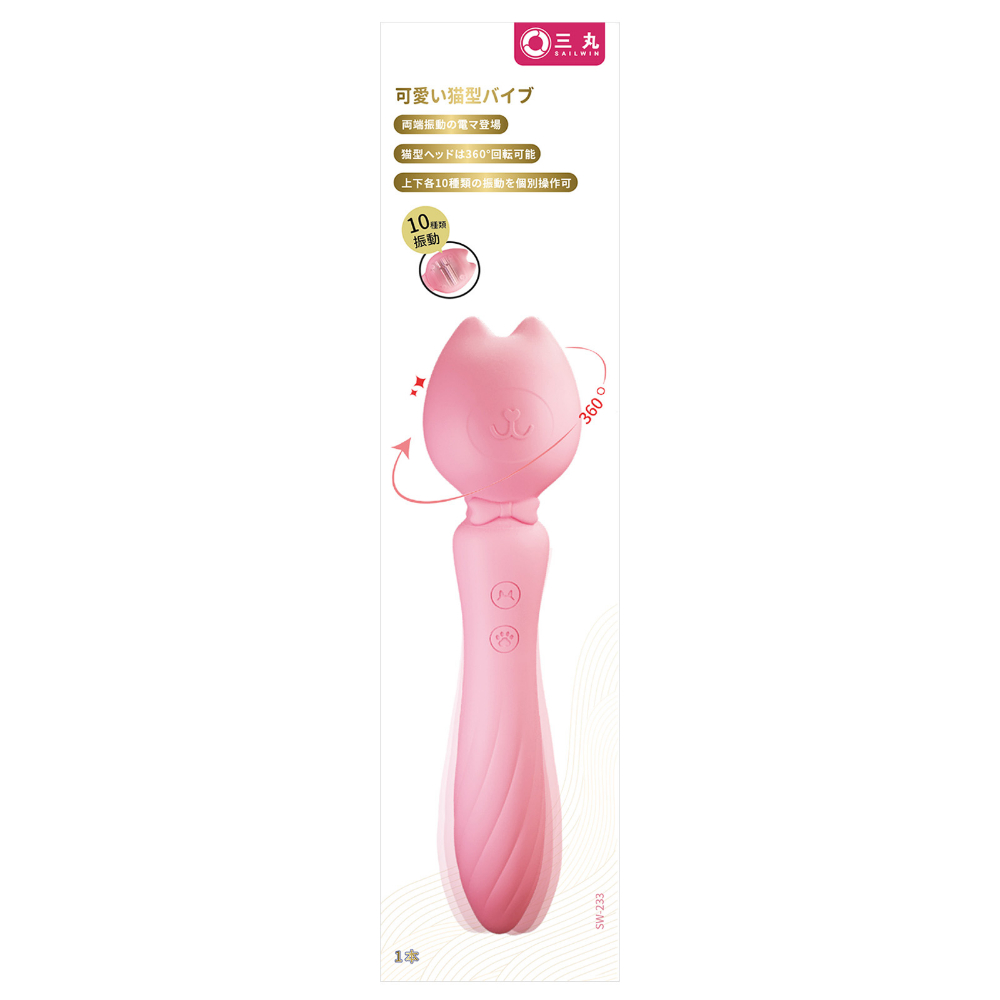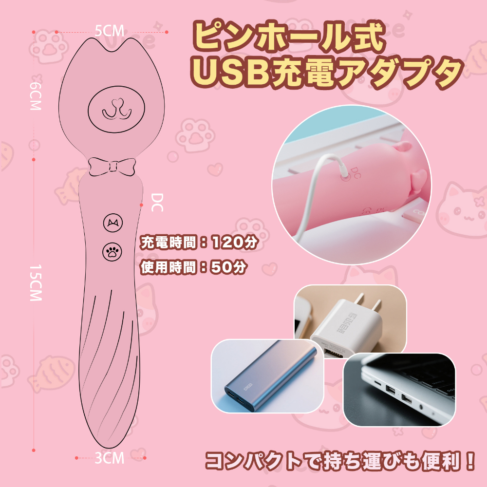 両端で刺激を楽しめる2WAY設計の電動アイテム。強力デュアルモーター搭載で、上下それぞれ10種類の振動モードを選べます。丸型ヘッドはスムーズに使いやすく、螺旋状の凹凸が心地よい刺激をプラス。ネコ耳型の先端は360°回転し、全身をくすぐるような愛撫プレイにもぴったりです。人間工学に基づいたカーブ設計でフィット感も◎。上下の振動は独立操作でき、好みに合わせてカスタマイズ可能。キュートなネコ耳デザインも魅力。USB充電式&IPX5防水。