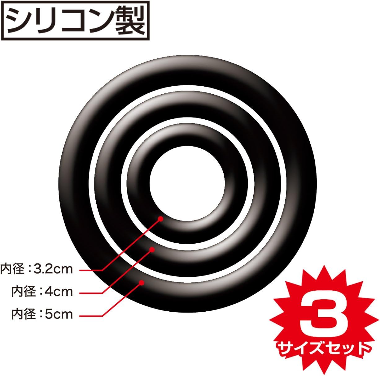 肌に優しく自然なシリコン製リング、大・中・小3個セット