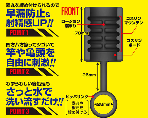 変わったグッズで即購入しました。 タマを締め付けるリングもついており 早漏の方にオススメかなぁと。 色も黒でエロぃです。