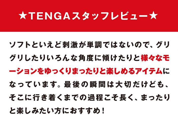 しっかりとした締めつけを感じながら、超ソフト設計による、まったりと撫でるような先端刺激を楽しめます。