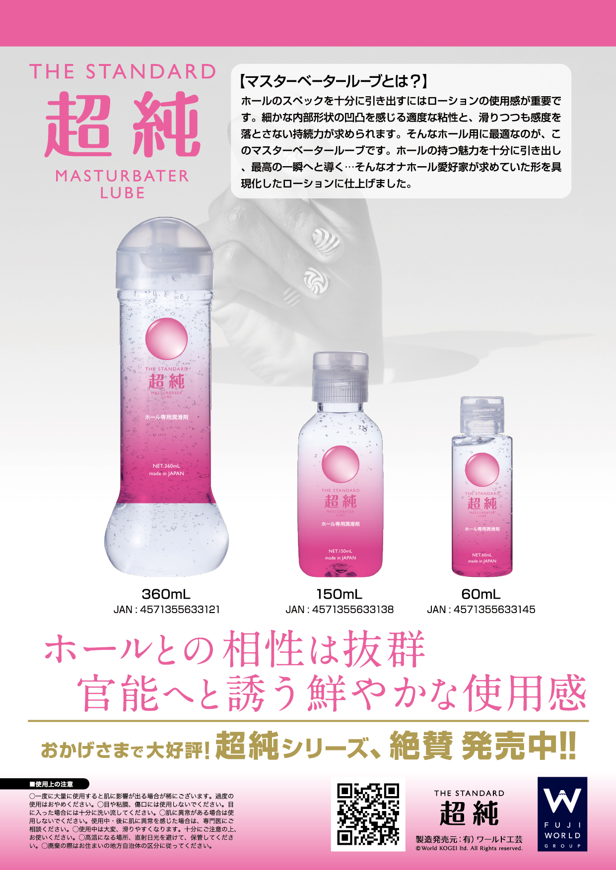 人気の超純シリーズに、ホールと相性抜群のローションが登場です。内部形状を感じやすく、繊細なホールのヒダにフィットします。便利なワンタッチキャップを採用し、使いやすさも抜群です。ローション選びに迷ったら超純で間違いなし!