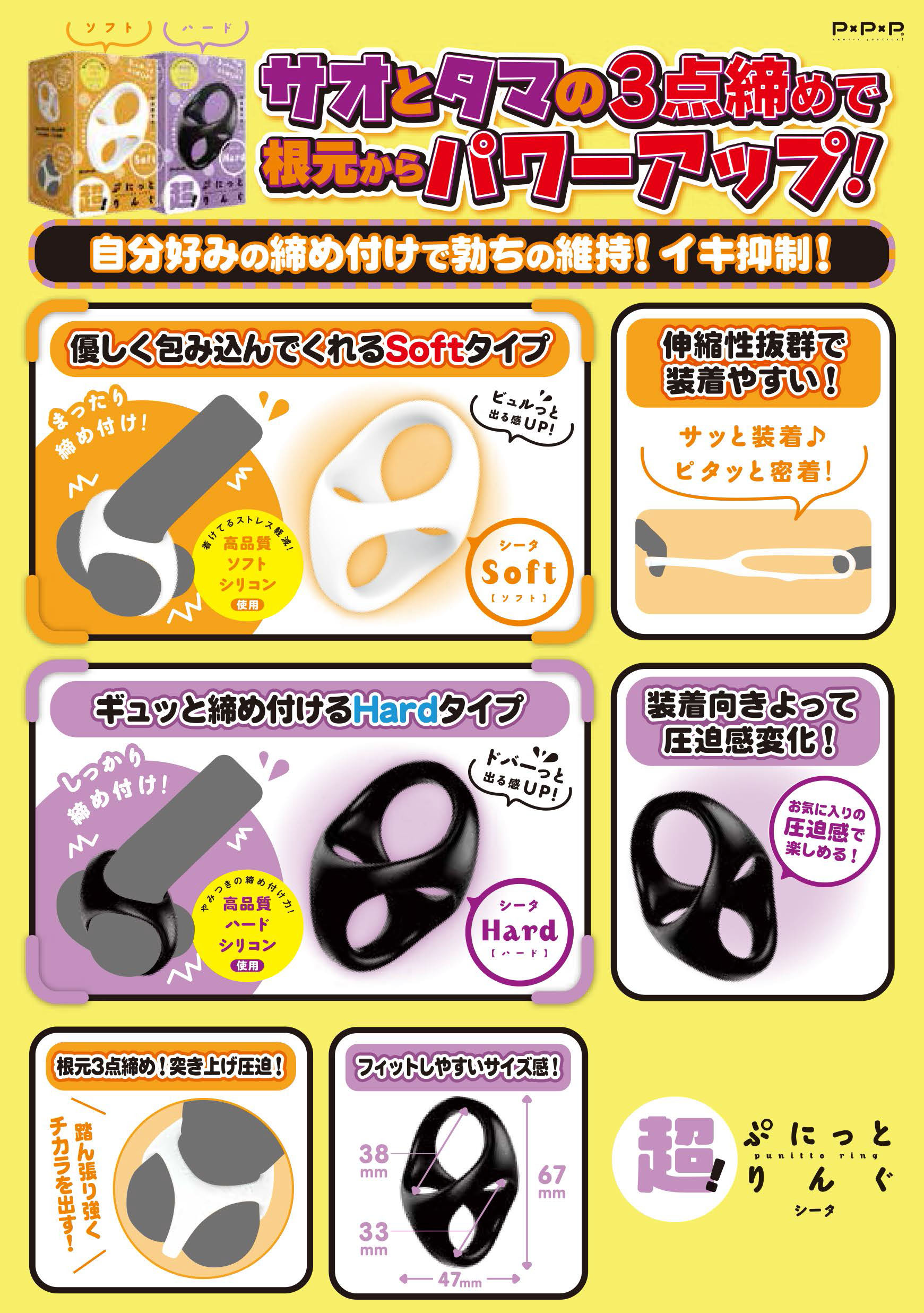 普通のリングは持っていましたが、 タマを覆うのは持ってなかったので 即購入させていただきました。 はじめ付け方が、わかりませんでしたが 箱の画を見ながら、装着。 ソフトな感覚が良いです。