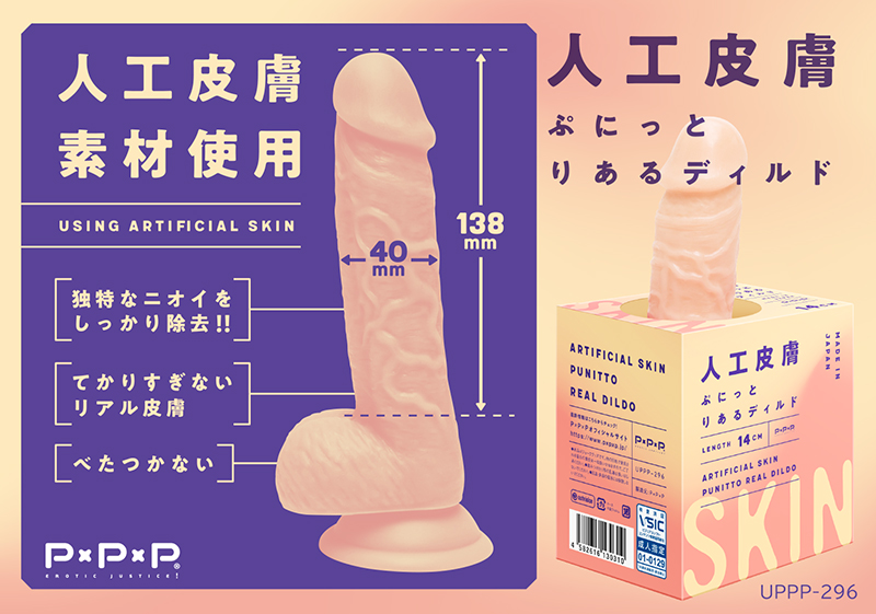 よりリアルを追求した、国内生産×国産人工皮膚素材のディルドができました。人工皮膚素材によって、てかりすぎないリアルな皮膚を再現しながら誰にでも安心して使えるようにひとつひとつ丁寧に作っています。ぷにっとやわらかやみつき感触×人工皮膚素材とリアルな造形でこだわりの仕上がり。棒部分の長さは138mm。先端部分の最大径は40mm。
