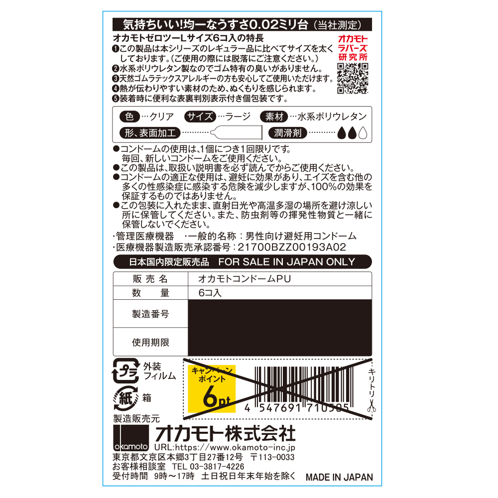水系ポリウレタン製コンドーム!うすさ均一!0.02mm!うすさ0.02mm。ラテックスアレルギーを考慮した水系ポリウレタン製。潤滑剤/ジェル多め。カラー/クリア。形・表面加工。Lサイズ
