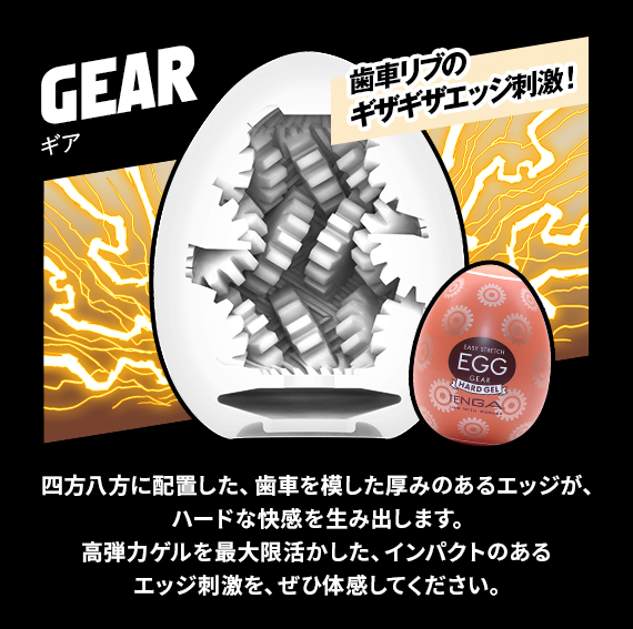 歯車リブのギザギザエッジ刺激!四方八方に配置した、歯車を模した厚みのあるエッジが、ハードな快感を生み出します。高弾力ゲルを最大限活かした、インパクトのあるエッジ刺激を、ぜひ体感してください。