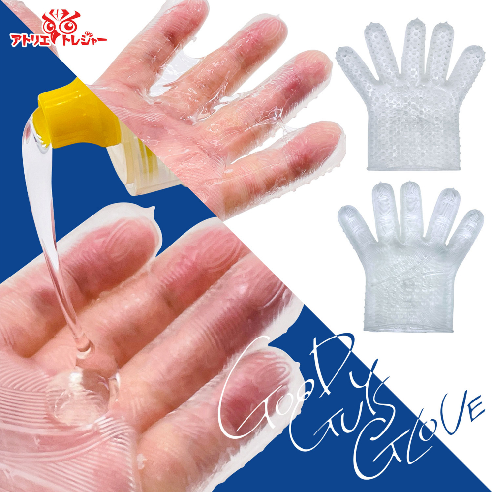 ミガこう!GOODGUYS!ジブンミガキグローブ!「GOODGUYSGLOVE(グッドガイズグローブ)」の新登場です。シリコーン製の透明グローブです。イボイボ面とヒダヒダ面の両面タイプ。右手でも、左手でも使用可能。付属のローションで楽しみ方は色々。ミガきにミガいて磨いてGOODGUY!になろうぜ!※透明グローブは1個入りです。【注意】製品を無理に引っ張ったり爪で傷つけないようにしてください。破損の恐れがあります。脱着は無理をせず行ってください。