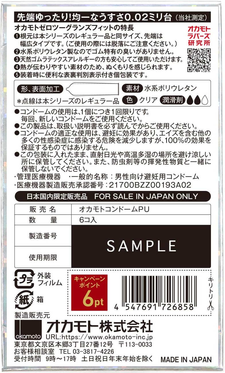 オカモトコンドームズ オカモトゼロツー0.02 グランズフィット 6コ入