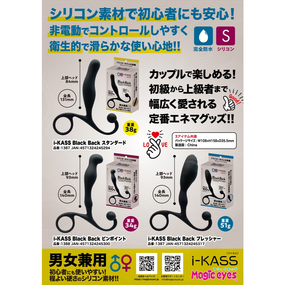 尻にいいアイカスにブラックバックシリーズが新登場!スタンダードはシリコン部の全長131mm先端18mmで最大径でも21mmと初心者からでも使用しやすくシリコンの会●ボールも搭載しています。女性の使用の場合にもシリコン素材なので初心者向き。ドライオーガズムを体験する第一歩を!!