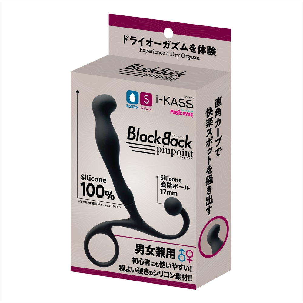尻にいいアイカスにブラックバックシリーズが新登場!ピンポイントは直角カーブのフックで自分のいいスポットを直で刺激できます。シリコン部全長140mm先端部が最大径のmmとなり会●ボールも搭載しています。女性の使用の場合にもシリコン素材なので初心者向き。ドライオーガズムを体験する第一歩を!!