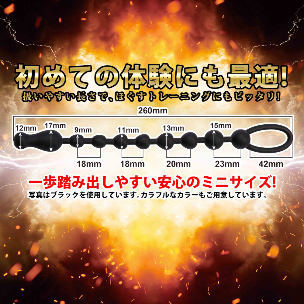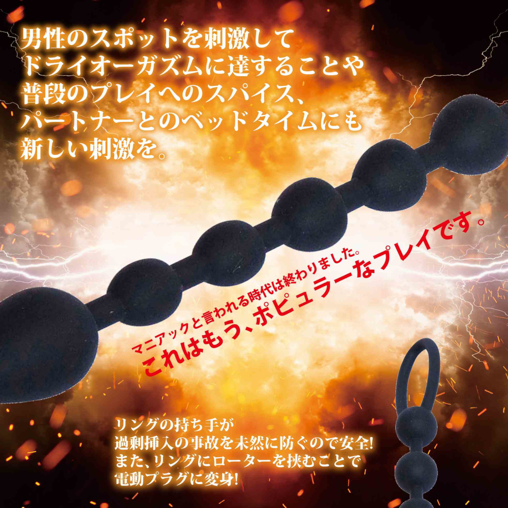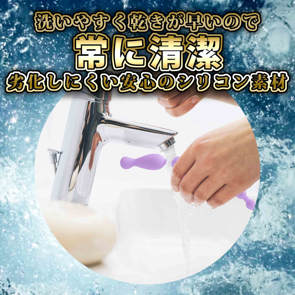 100%ピュアシリコン製で安心安全、10個のビーズが連なった取っ手付きのアナルビーズです。