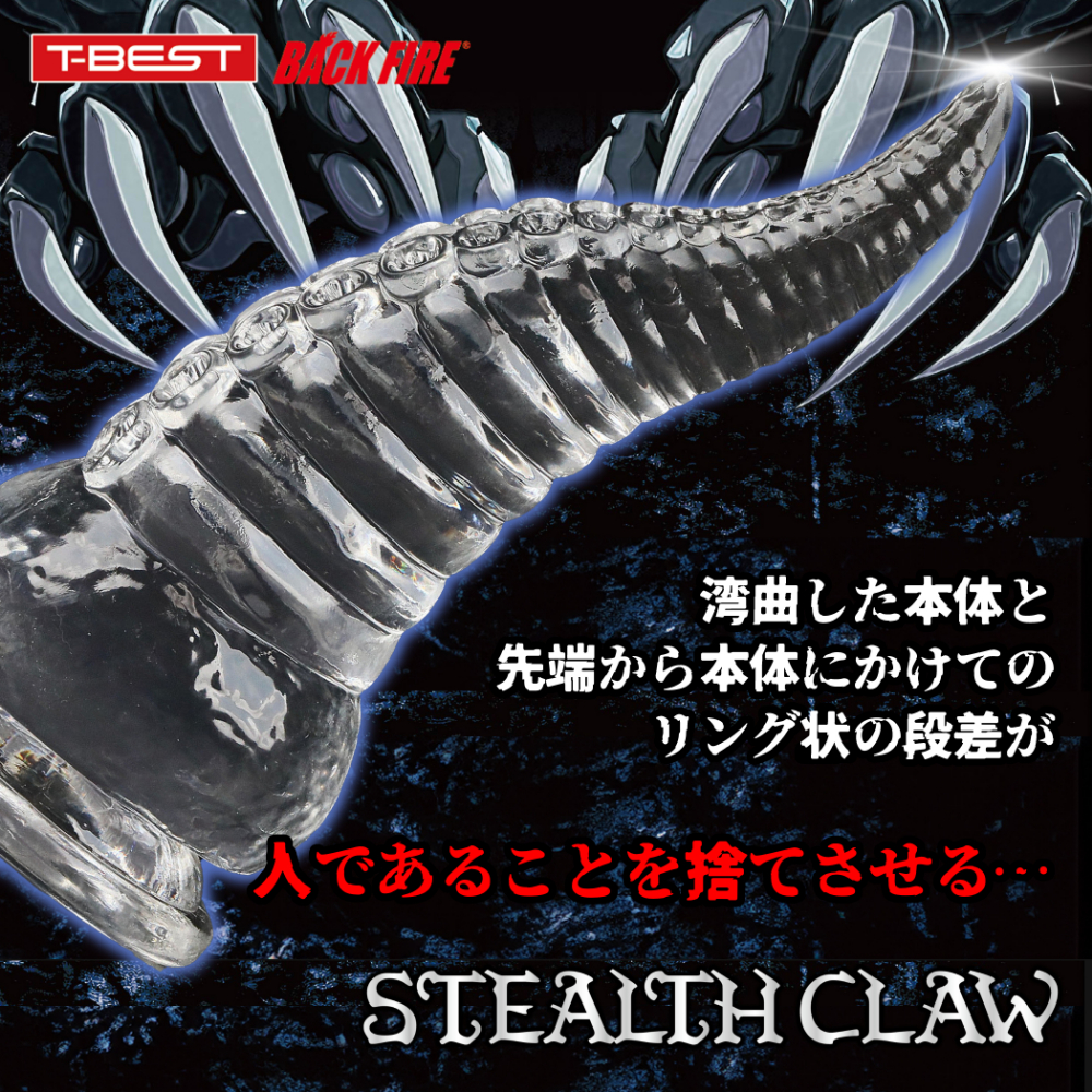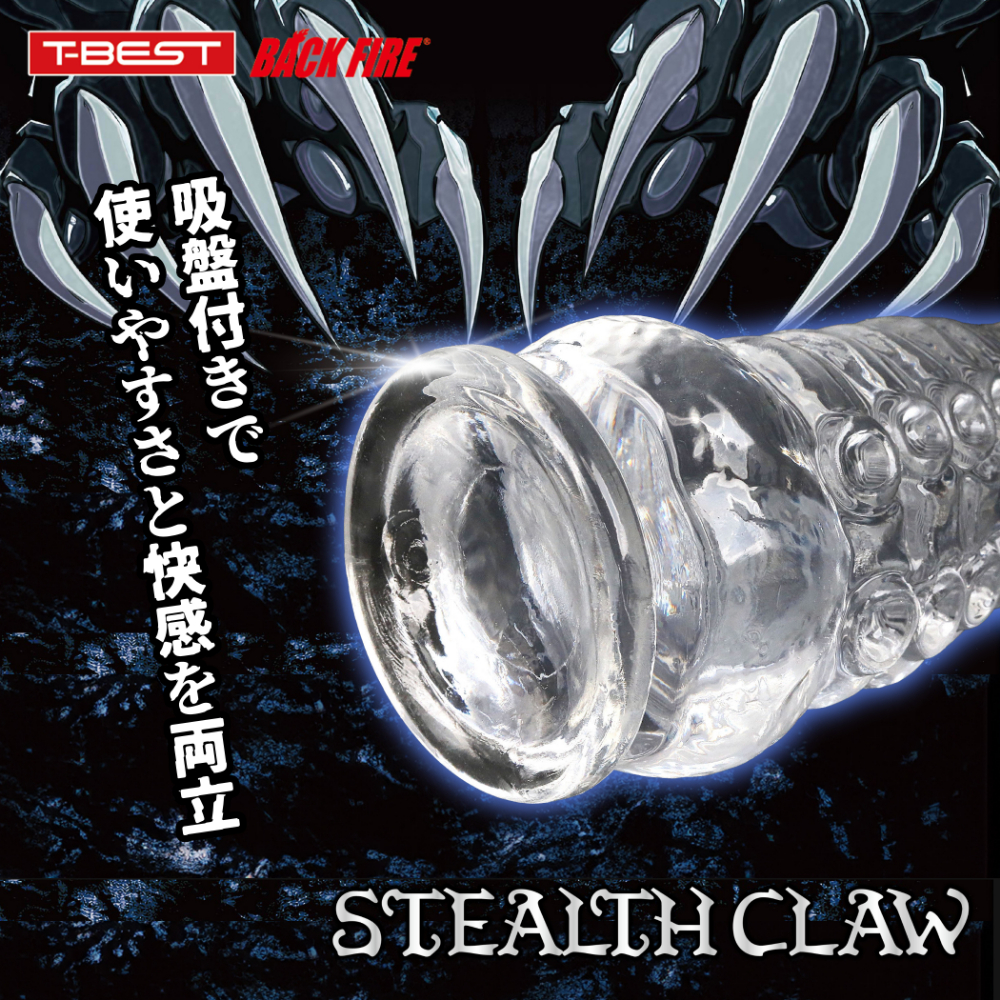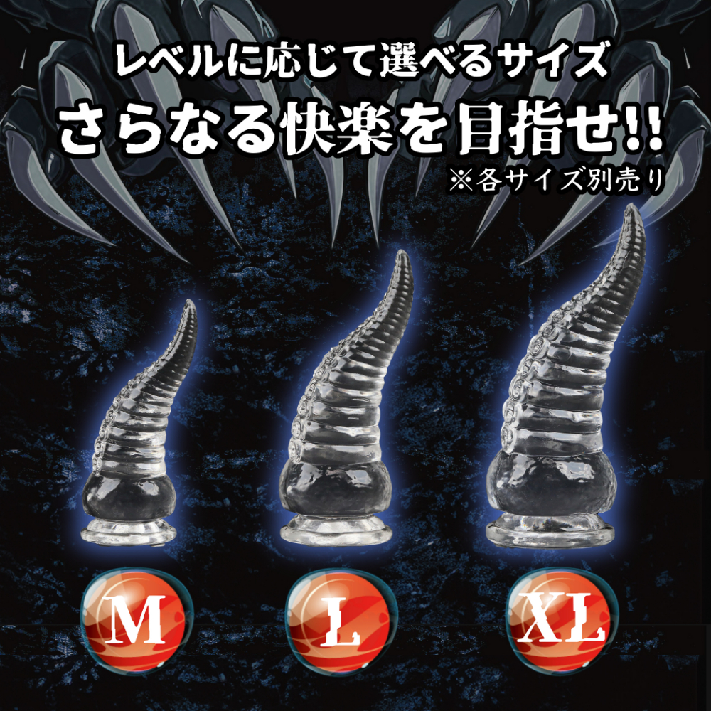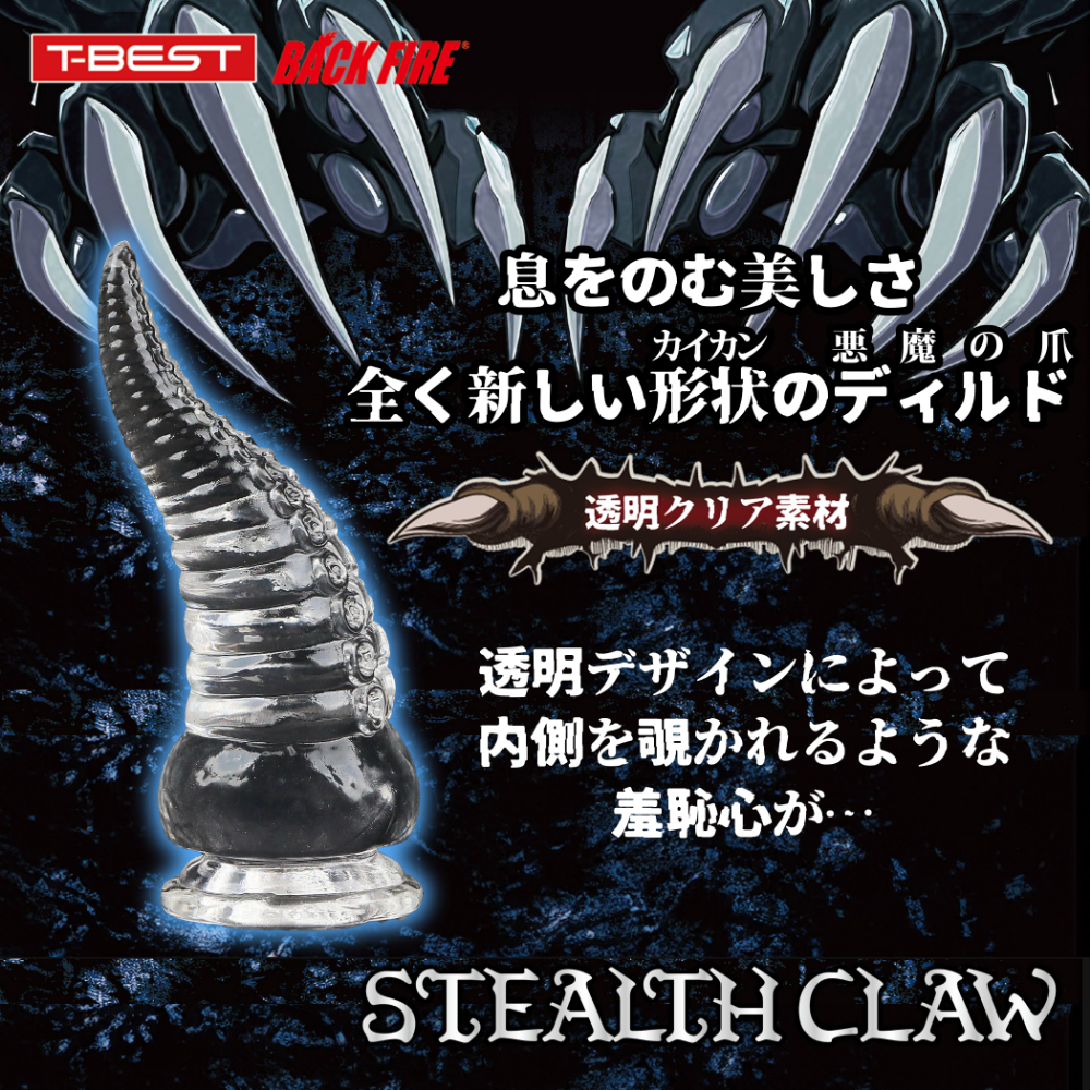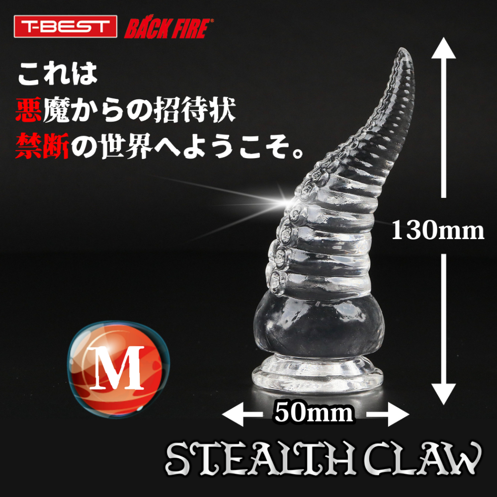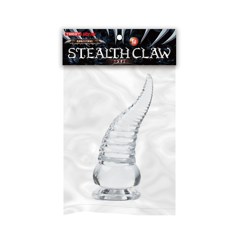 全く新しい形状の「ステルスクロー」はソフトで透明な素材で作られた爪の形をしたユニークディルドです。角のような形状に、リング状の段差とさらに刺激を与える吸盤型のスィートスポットが付いています。爪のような形状が自然な形で体のあらゆる部分にフィットし敏感な部分を刺激、吸盤模様がローションと絡みついて、敏感な部分を舐めるようさらに刺激します。そして透明なデザインは内側が見られるような羞恥心を引き出すのです!吸盤もついていて使いやすさと快感を両立させ、男性でも女性でも、前でも後ろでも使える画期的なアイテムです!ノーマルプレイにおすすめのMサイズ