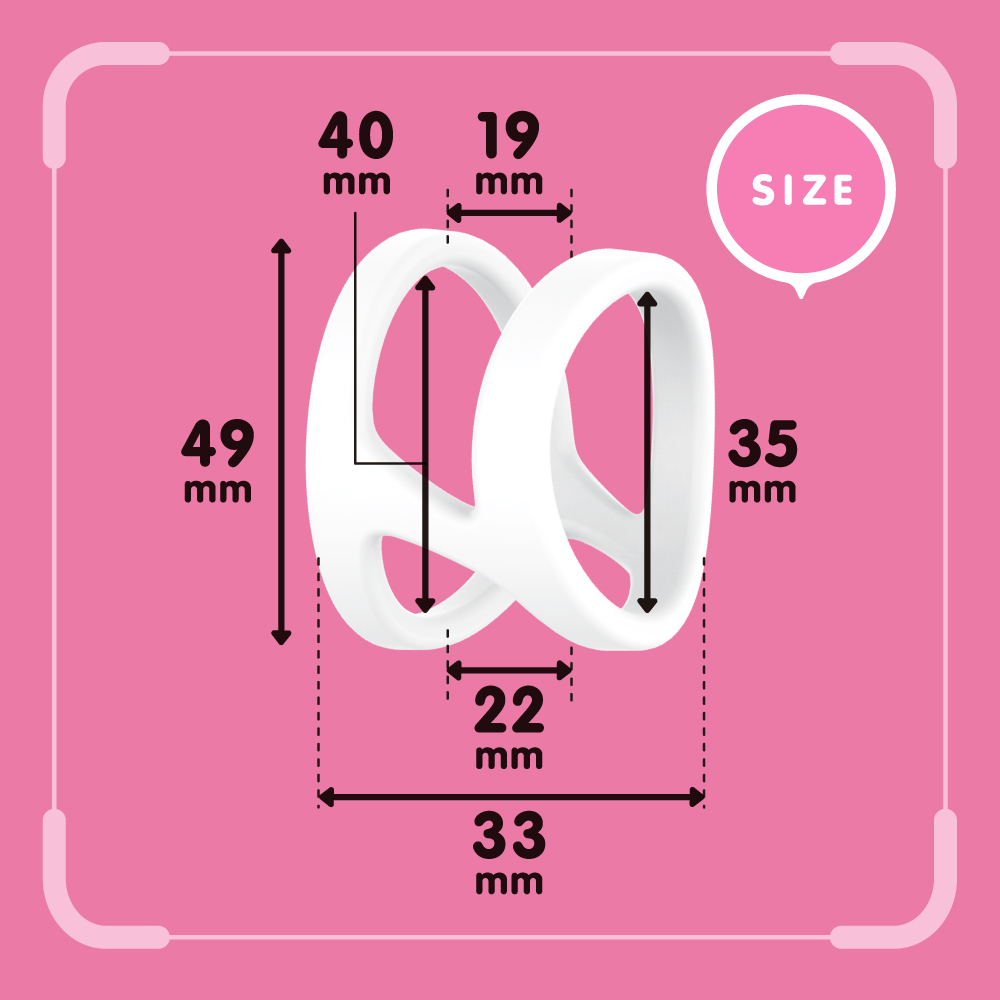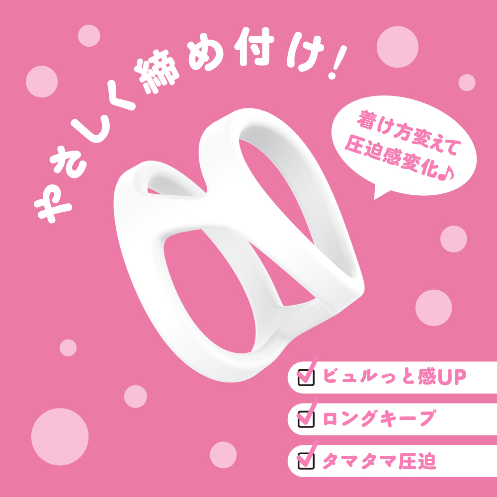 超!ぷにっとりんぐから根元と竿元に簡単装着が出来るツインロックソフトverが登場。サッと装着♪ピタッと密着!装着しやすい伸縮性、臭いのない高品質シリコンで根元と竿元をやさしく締め付け、着けてるストレスを軽減!すべすべ装着感で毛の巻き込みを緩和。挟み込んだり押しだしたりタマタマ圧迫の使い方も色々。着け方を変えて圧迫感も変化♪ 自分好みの締め付けで、勃ちの維持!萎え気味の竿の補強!イキ抑制!クロスさせると包囲圧迫で頑強度MAXに!ソフトな締めつけでビュルっと出る感UP♪ゆ〜っくり夢心地発射!