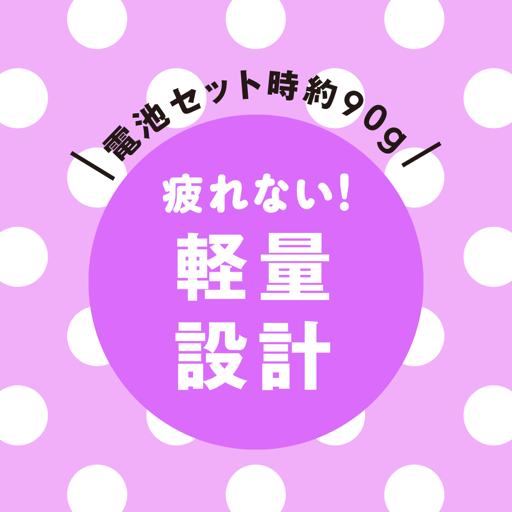 お買い求めしやすい価格の「はじめて」に選んでほしいデンマ。コンパクトボディーでも、しっかりイケる、強振動。こっそり遊べる静かな可動音。電池を入れた状態でも90gの軽量設計。強/弱をスライドスイッチで変化できる簡単操作仕様。使いやすい360°ヘッド可動。使いたい時にすぐ使えるよう、便利な電池交換式。アルカリ単4電池×2本付き