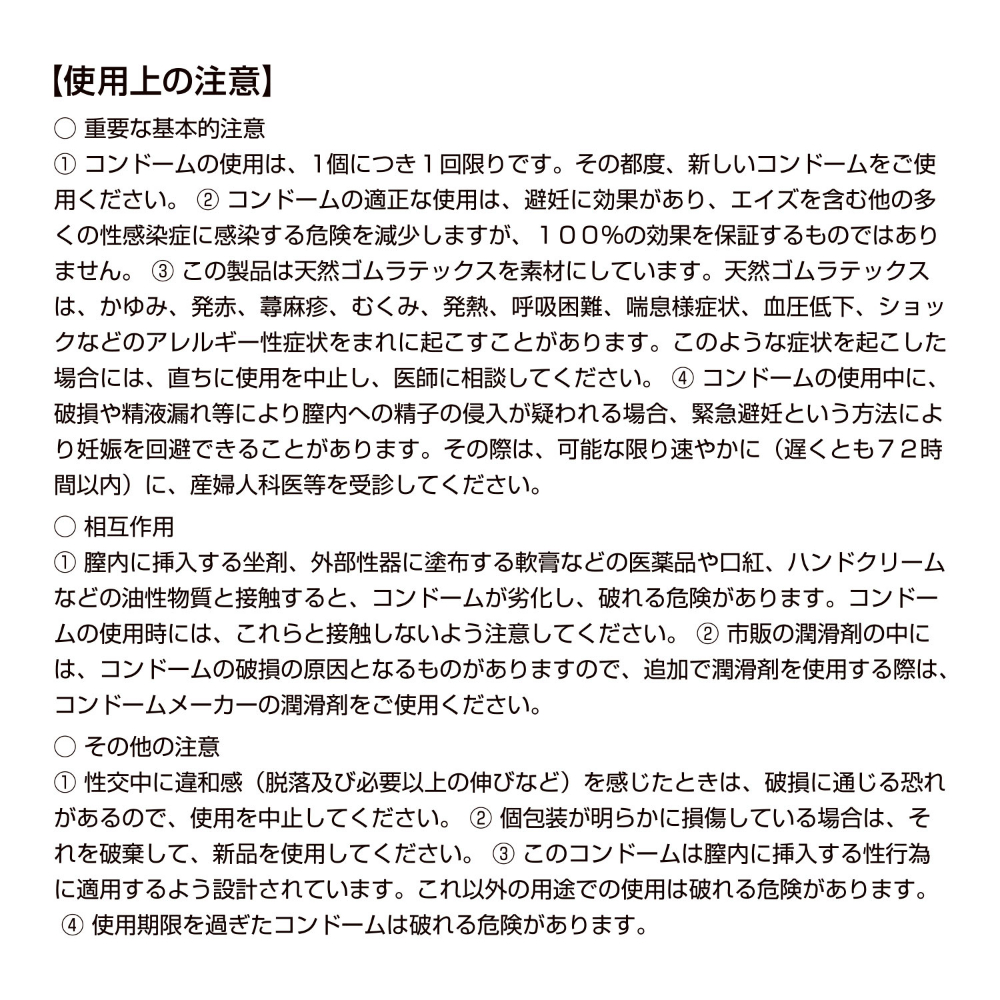 天然ゴムラテックス素材のナチュラルタイプ・コンドームです。程よいサイズ感で多くの男性にフィットします。この製品は日本国内で製造されています、安心してお使いください。コンドームの装着は大人の男のマナーです。使用方法を守って、正しくお使いください。