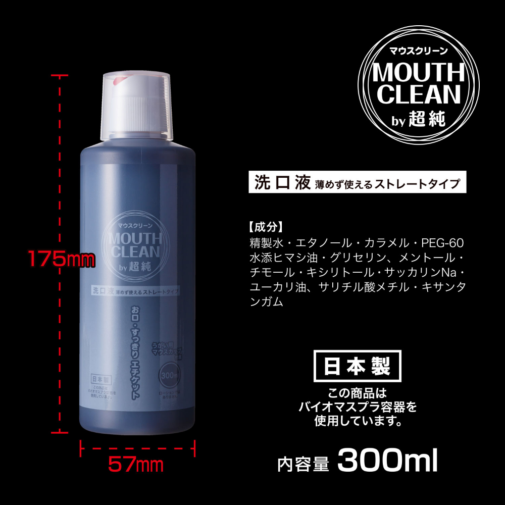 人気の超純シリーズからプレイ前のエチケット商品、洗口液(マウスウォッシュ)の登場です。プレイ前のエチケットは男女ともに気をつけたいところ。そこで登場したのが本製品です。使い方は簡単、プレイ前に10〜20mlほど口に含み、約30秒ほど口全体に馴染ませる様にすすぐだけ。口の中の嫌な感じを取り除き、さっぱりとした状態でプレイへと臨むことができます。付属のキャップ部分は計量カップになっており、適量を測るのに適しています。また薄めずにすぐに使えるのも嬉しいところです。本製品は国内の工場で生産された国産品です。※この製品は飲料ではありません。絶対に飲み込まないでください。