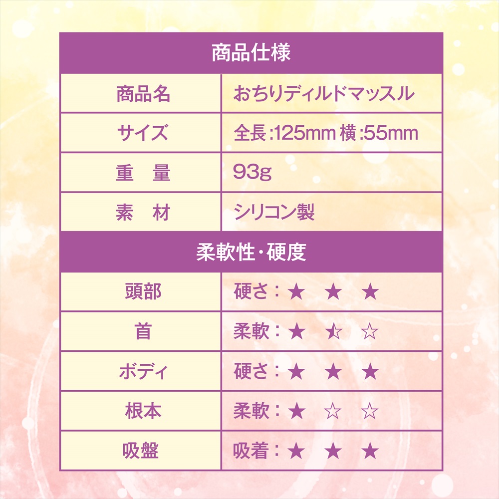 100%高品質シリコンの吸盤一体型ディルド。先端、コブ、ボディはまさにムキムキ重量級!全長125mm男女兼用、丸洗いOK