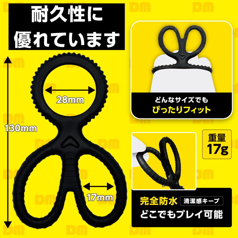サ●と玉を同時に締め付けて膨張感アップ。2つの玉をそれぞれ締め付けるセパレートタイプ。サ●と玉を締め付けて、膨張感と持続力をアップするコックリングです。【サ●玉セパレート】は2つの玉を左右でそれぞれ圧迫し、サ●と同時に締め付ける3点締めタイプです。サ●を根●から支え、玉を重点的に締め付けることで発射時の快感を向上させます。3点同時締め付けで普段とは段違いの硬さ、持続力、射出量をサポート。シリコン製で様々なサイズに対応可能。防水仕様で洗浄も簡単です。