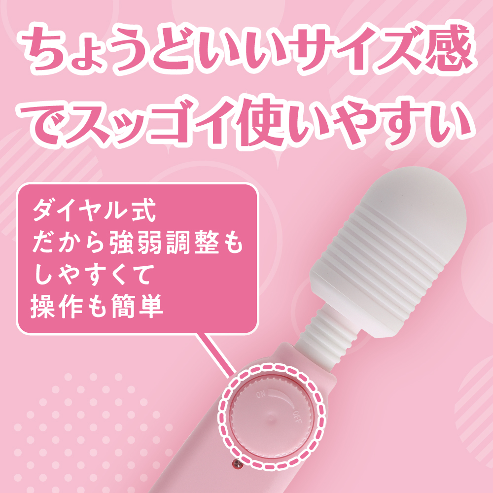 お手軽さと使い心地を重視したとってもカジュアルなデザインのミドルサイズデンマ登場!触り心地抜群のシリコンラバーヘッドに優しい当て心地のフレキシブルネックはもちろん、使いやすいダイヤル式スイッチ仕様。高品質モーターを採用して丁度良い振動も魅力です。軽量&持ちやすい形状だから疲れにくく、楽しめます。電マがよりお手軽に楽しめるローターライクバイブレーター。