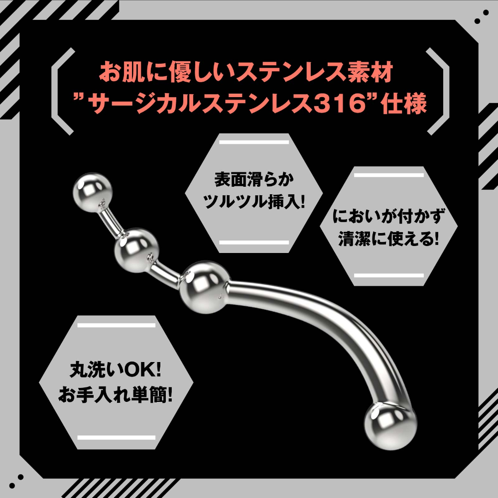 グリグリ開発でトコロテンイキ!★自分の力加減でメス堕ちゾーンを圧迫開発できるステンレススティック!ぬぷぬぷと慣らし挿入ができる3連ビーズフォルム!持ち手も挿入できる2WAYです♪においがつかないステンレスなので清潔に保てる&お手入れ簡単!ツルツルの表面で滑らかに挿入&密着!お肌に優しいサージカルステンレス316を使用しています。