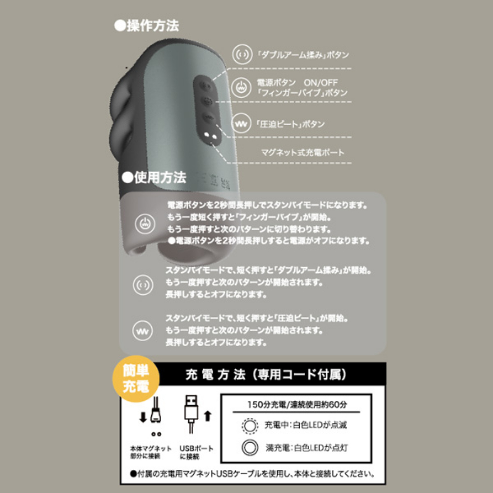 装着するだけで劇快感!俺がコスらずイケるはずがない!!!あらゆる角度で揉む、圧迫、振動。簡単操作で1000通りの動きで完全刺激。装着するだけでコスらなくてもイケちゃう?!いつもと違う刺激が攻め立てる究極マシーン!医療グレードのシリコンが優しく包み込み、パワフルモーターで揉んで、圧迫ビートで刺激され、強振動が同時にせめる!どちらの向きでも装着可能だから、1000以上の違った刺激が楽しめます。使った後は丸洗いできるイージーメンテナンス設計。