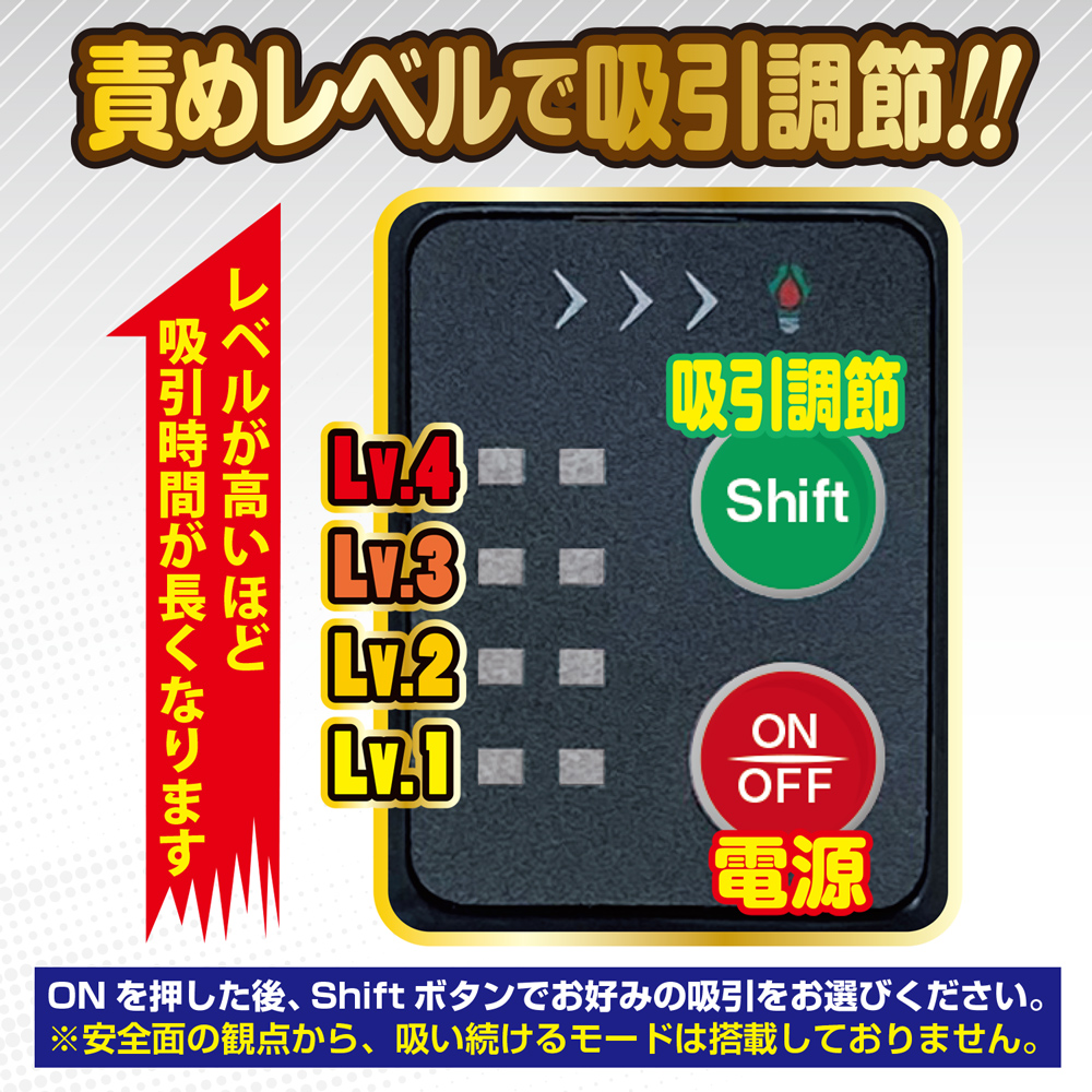 吸引レベルを調節しながら、本体を押し込んだりグリグリすれば吸いつきに悶え狂う。
