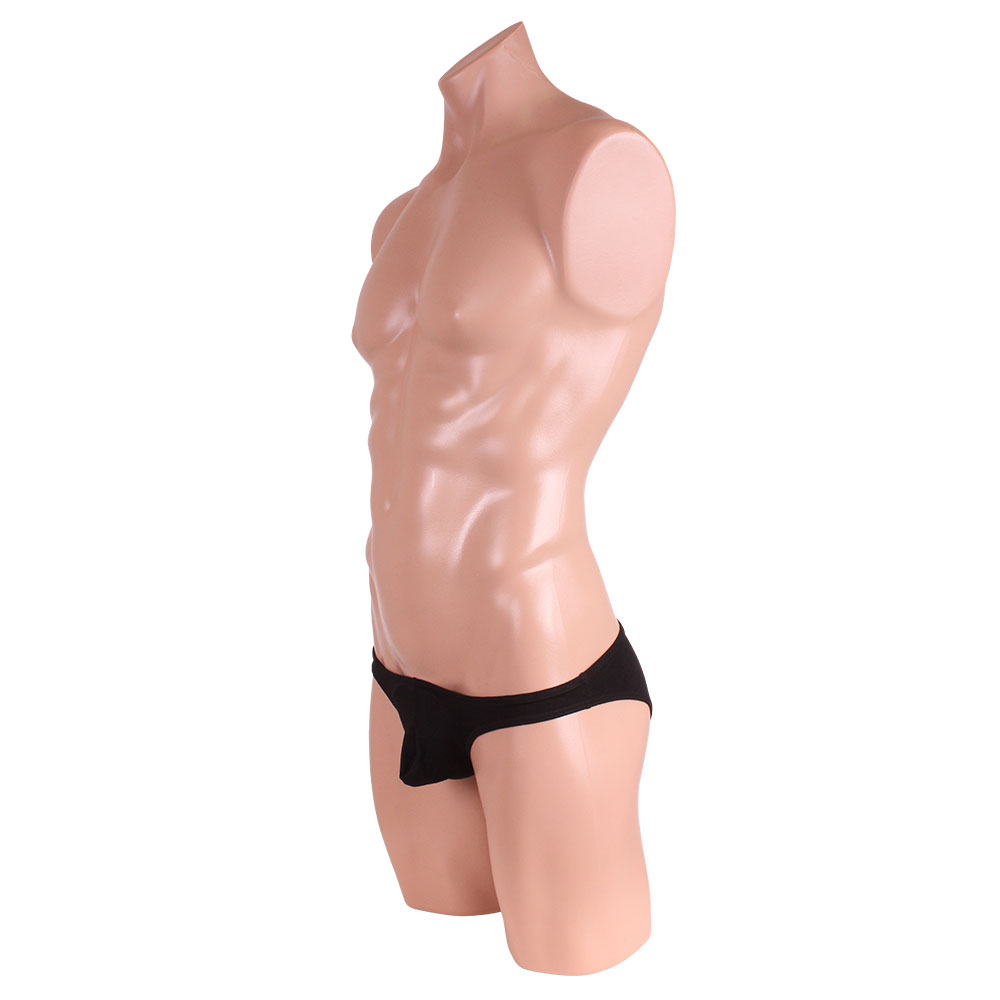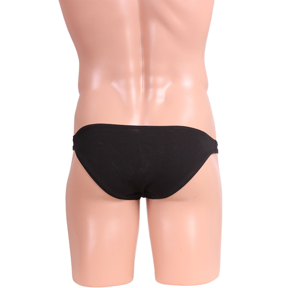 肌に優しいコットン素材のブリーフ。フロントのふくらみが男らしさを強調! クールなブラック。サイズ詳細:ウエスト68cm伸ばすと96cm