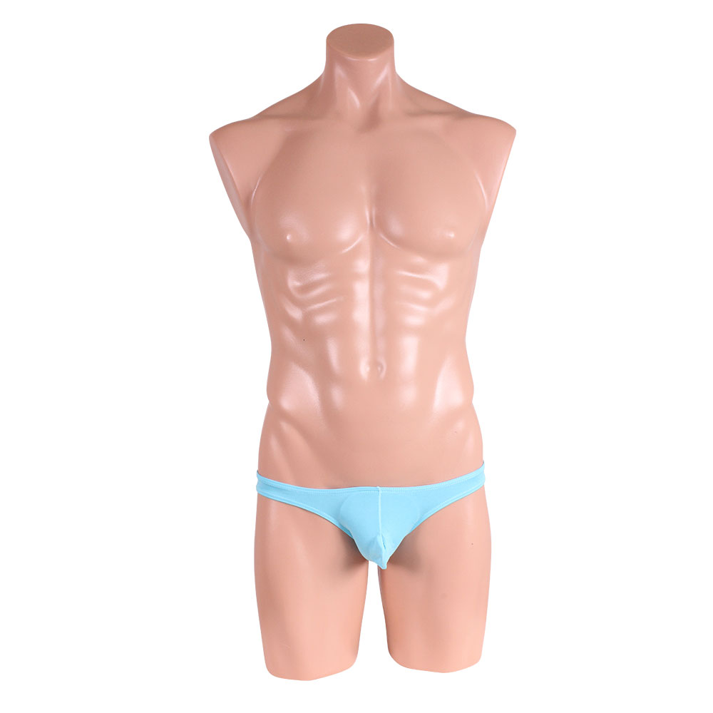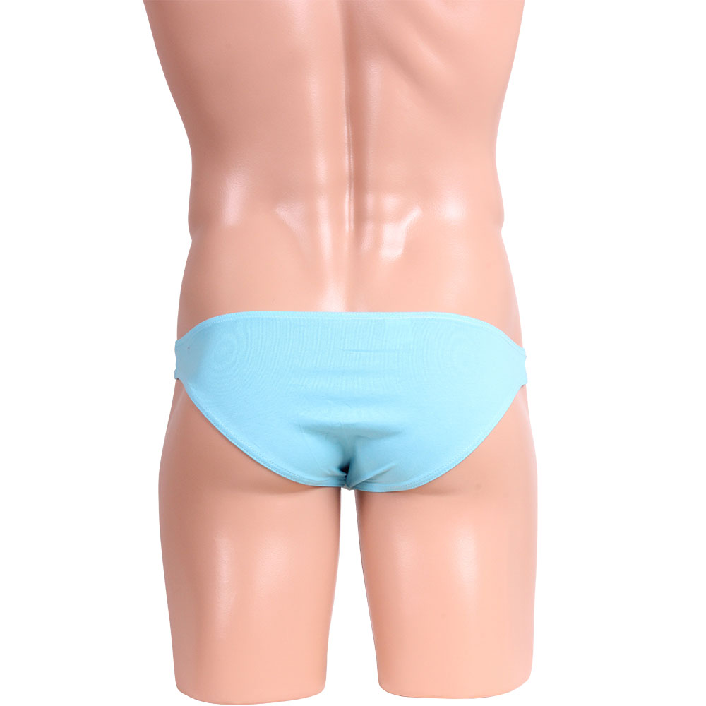 肌に優しいコットン素材のブリーフ。フロントのふくらみが男らしさを強調! オシャレ水色。サイズ詳細:ウエスト68cm伸ばすと96cm