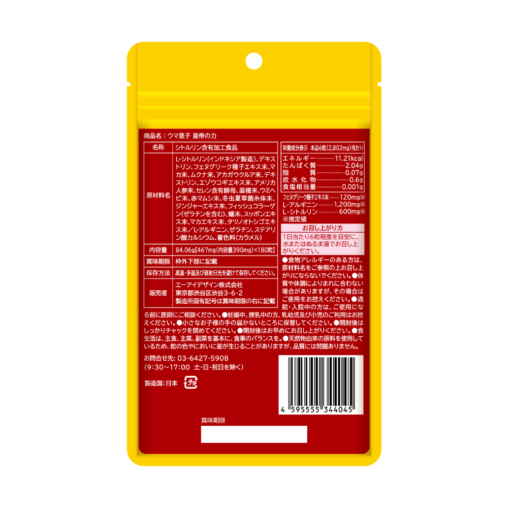 実話誌「週刊大衆」、人気男性向けWEBメディア「夕やけ大衆」などメディアで話題の人気商品!内なる力を解き放つ!贅沢成分を独自配合終わらない満足感を求めるあなたへ。目覚めるような躍動感で日常を彩ります。フェヌグリーク種子エキス、L-アルギニン、L-シトルリンなど独自配合により、男性の魅力を際立たせます。夜の自信"をみなぎらせ、しなやかなエネルギーを全開放!<主な特長>・揺るぎない"男性らしさ"を強力サポート「フェヌグリーク種子エキス」・尽きることのない活力「アルギニン」「シトルリン」・抑えきれない昂揚&コンディション維持にウミヘビ、スッポン、タツノオトシゴを配合圧倒的な自信で、悦びをその手に掴め!揺るぎない力強さと余裕が、さらなる高みへあなたを導く。今こそ、自分史上最高のあなたへ。"