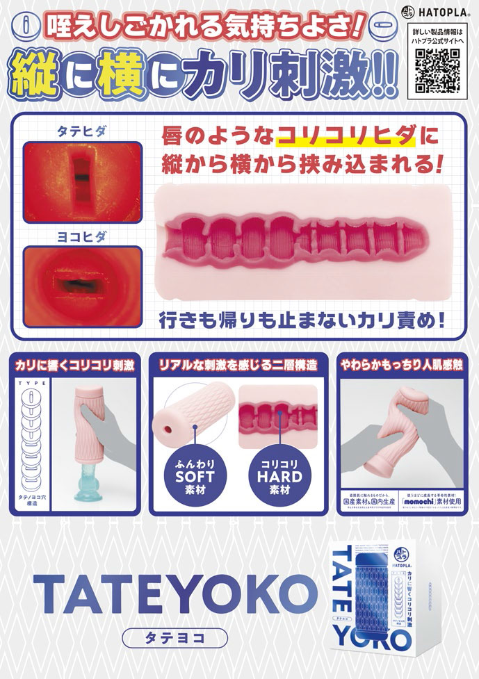 パンパンに張った先端を縦に横に空いた穴で挟み込み、まるで口で咥えしごかれるようなカリに響くコリコリ刺激をお楽しみ頂けます。