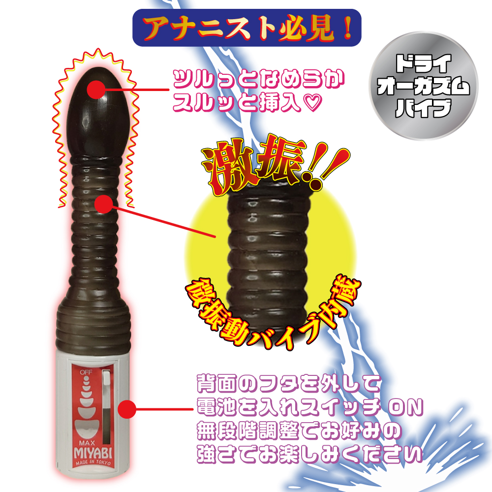 激振!アナニスト必見!!先端は程よく弾力があり滑らかな丸みのあるシルエットで吸い込まれるようにスムースイン!細くくびれた部分に微振動バイブを内蔵してあり先端へと振動が伝わり超絶快感!!細めだけどオナにも使えてGス●狙いもOK。ヘッドの下から連なる段々でク●に当て・擦りで絶妙な刺激!男性を責める逆AFでは前●腺刺激でドライオーガズムの快感の連続。電池を入れればすぐに使える楽々コントロールBOX無段階調整スイッチでお好みの振動パワーでお楽しみいただけます。単四電池3本使用(アルカリ電池推奨)静穏タイプ