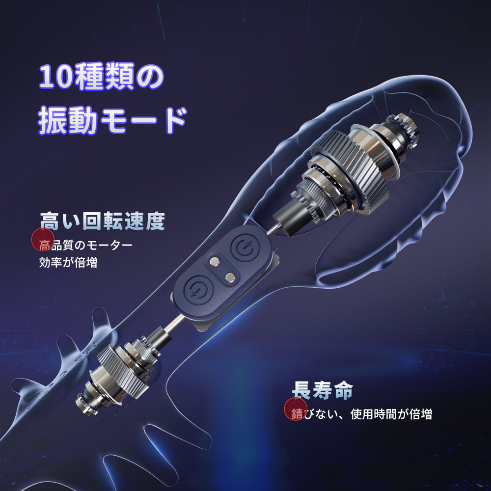 ただの快感では満足できないあなたへ。《デビルトレーナー》は、振動×密着×構造刺激の三位一体で、快感と同時に感度のコントロールをサポートするハイエンドトレーニングギアです。2つのスイッチと独立モーターで、睾丸まわりまでしっかりカバー。包み込むような刺激と、内部の凹凸ラインが擦れ感を引き出し、まるで握られている"ような濃密な体験に。さらに、本体下部のしなやかに動く軸構造が、さまざまなサイズや体勢にもフィット。「鍛えたい」「持久力を上げたい」「より強い快感を求めたい」方に最適です。"
