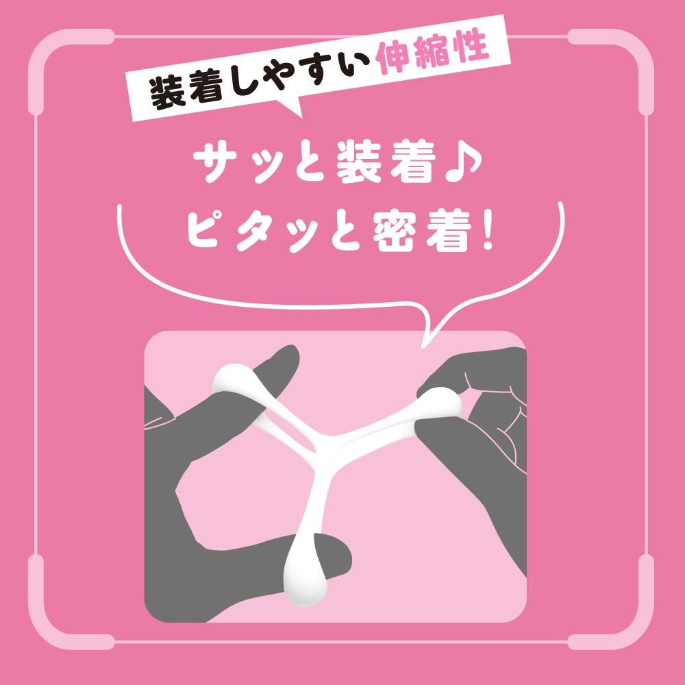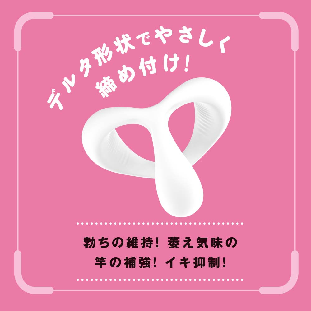 超!ぷにっとりんぐデルタにLサイズが登場!サイズに合わせて選択ができるようになりました。サッと装着♪ピタッと密着!根元を3点締めしてくれるデルタ形状のソフトverです。臭いのない高品質ソフトシリコンで着けてるストレスを軽減!デルタ形状でやさしく締め付け!勃ちの維持!萎え気味の竿の補強!イキ抑制!フィット面に施された滑り止めがズレを軽減し、皮戻り防止にも便利です。ビュルっと出る感UPでゆ〜っくり夢心地発射!検査番号:2500422