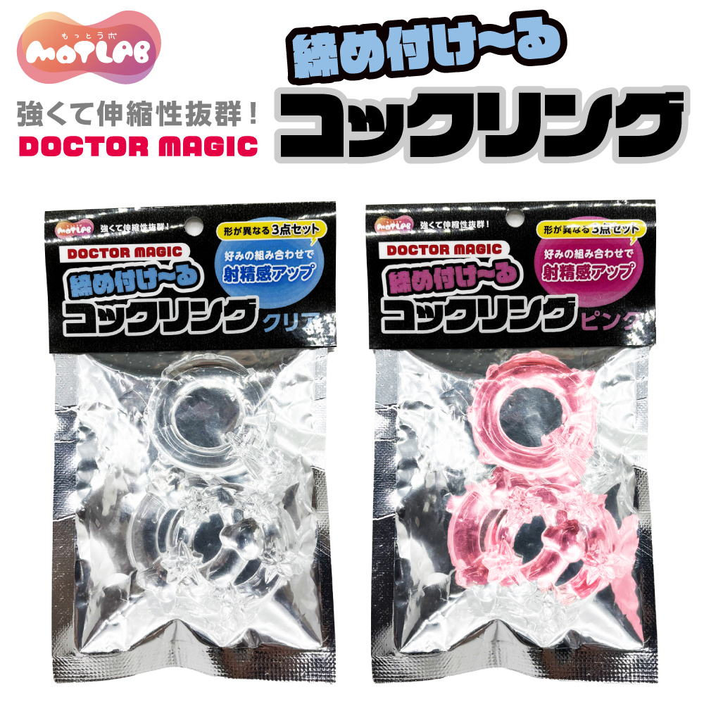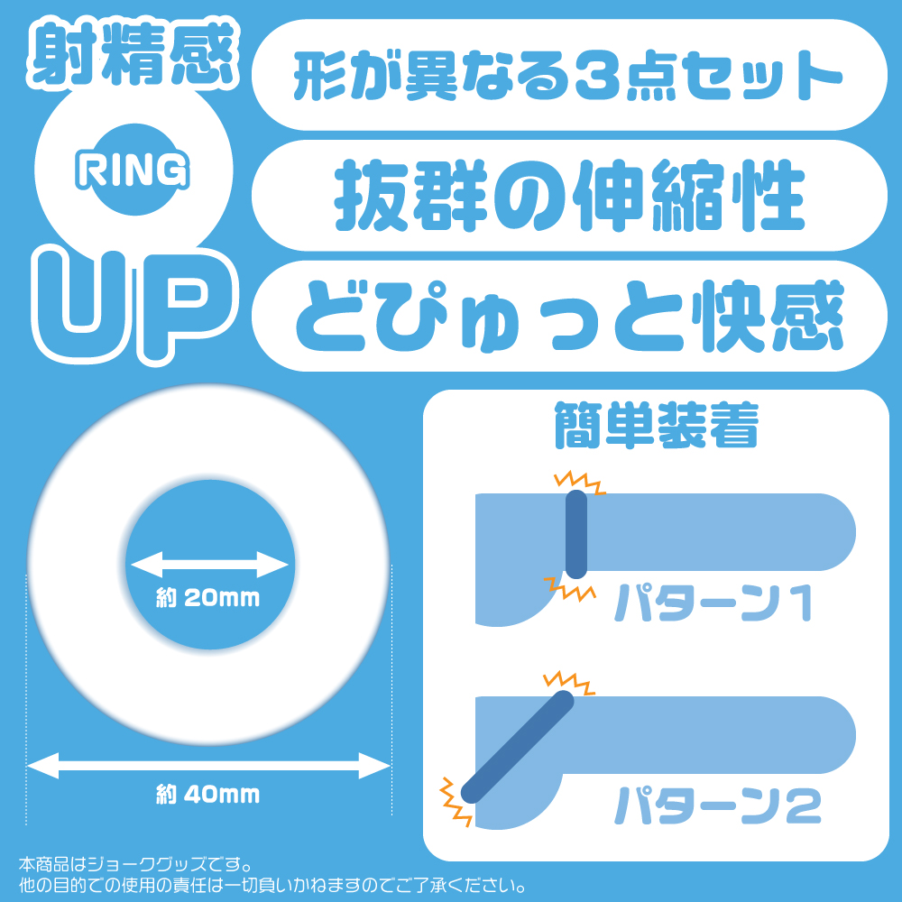 いつものプレイに手軽にアクセント。膨張率・快感をサポートする締め付けリング3個セット。装着部位をググっと締め付け、膨張感と快感をアップさせるリング3種セットです。伸縮性抜群のソフトシリコン製で様々なサイズの方にしっかりフィット。形状の違う3種のセットなので、最初は1つから、慣れてきたら好みの組み合わせでさらに楽しむことができます。普段のプレイに一工夫加えたい、マンネリ解消したい、元気が無くなってきた等お悩みの方へ、手軽にいつもと違う快感をご提供します。