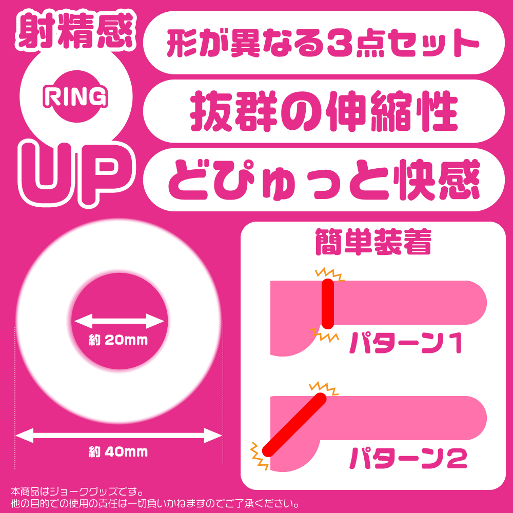 いつものプレイに手軽にアクセント。膨張率・快感をサポートする締め付けリング3個セット。装着部位をググっと締め付け、膨張感と快感をアップさせるリング3種セットです。伸縮性抜群のソフトシリコン製で様々なサイズの方にしっかりフィット。形状の違う3種のセットなので、最初は1つから、慣れてきたら好みの組み合わせでさらに楽しむことができます普段のプレイに一工夫加えたい、マンネリ解消したい、元気が無くなってきた等お悩みの方へ、手軽にいつもと違う快感をご提供します。