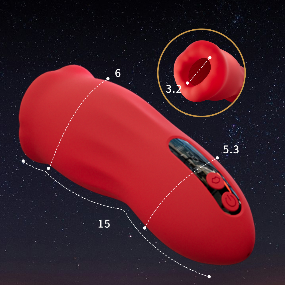 舌先で舐められているようなゾクゾクする快感。吸引との組み合わせで、まるで本物の愛撫を受けているかのようなリアルな刺激を再現。赤い唇はしっとりふっくらと艶やかで、あなたの妄想をかき立てます。9段階の振動と3段階の吸引を自由に調整でき、液晶ディスプレイで直感的に操作可能。防水等級IPX5、USB充電式でいつでもトレーニングOK。