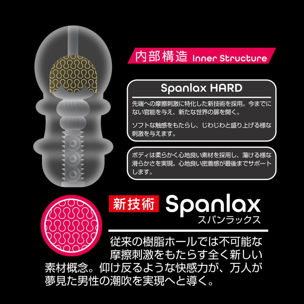全方位フェチをうたう男性向けブランド「360°FETISH」。今度の商品は未だかつてない「男の潮吹き」に特化した専用モデルです。潮(うしお)SPLASHは新技術Spanlax(スパンラックス)を開発・採用し、従来の樹脂型ホールでは不可能だった摩擦刺激をもたらします。今までのホールにはない素材感で、男の潮吹きをサポートします。CORONAHARDは刺激をダイレクトに感じるパワフルな使用感です。先端部分を上下にスライドするように使用することで、縊れ部分をくまなく刺激します。徐々に昂まる刺激と相まって、「男の潮吹き」への期待感が持てるアイテムになっています。また本品は匂いの少ない素材を使用した純国産です。このホールのために考えられた新素材・KRスキンを採用し、純度の高い快感を提供することが可能になりました。目覚めよ、男たち!!新たな可能性を探求してください。