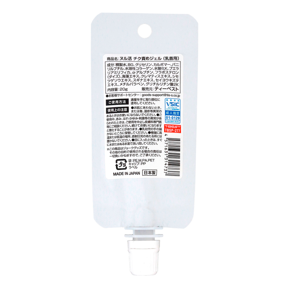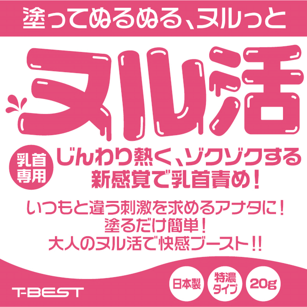 いつもと違う刺激を求めるアナタに!塗るだけ簡単!大人のヌル活で快感ブースト!!じんわり熱く、ゾクゾクする新感覚で乳首責め!各種植物エキス、α-アルブチンなどお肌に嬉しい成分を配合!安心・安全の日本製。内容量:20g