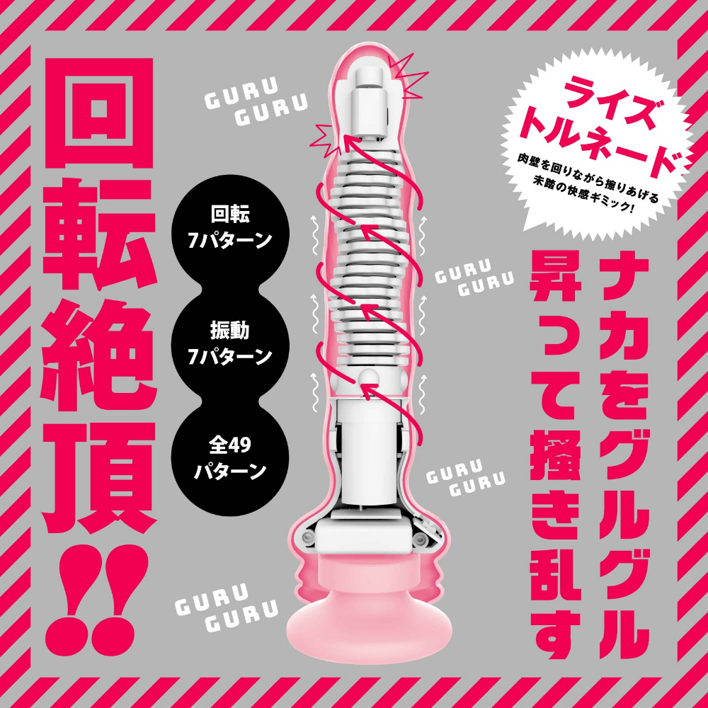 ★新感覚のアナルエクスタシー★ナカをグルグル昇って掻き乱す新快感♪肉壁を回りながら擦りあげる未踏の快感ギミック搭載、ライズトルネード!曲がりやすくて優しく密着&奥の気持ちいいとこを強烈刺激するぷにっと奥イキビーズ!挿入角度の幅が広く弾力性の高い強力吸盤を採用!高品質ソフトシリコン & 簡単挿入フォルム♪極イキ仕様の優秀ディルドでもっと新しい快感を見つけてくださいね!回転7種類と振動7種類を組み合わせ49パターンのコンビネーションが楽しめます。本体は充電式なのでエコに使用可能。水洗いできてお手入れも簡単!※本体:充電時間約180分(供給電力量によって変わります)※本体:最大連続稼働時間約60分(初期回転・振動パターン未変更時)_IPX6等級_7パターン回転_7パターン振動_付属品:電池式リモコン_USBマグネット式充電ケーブル検査番号:2503130