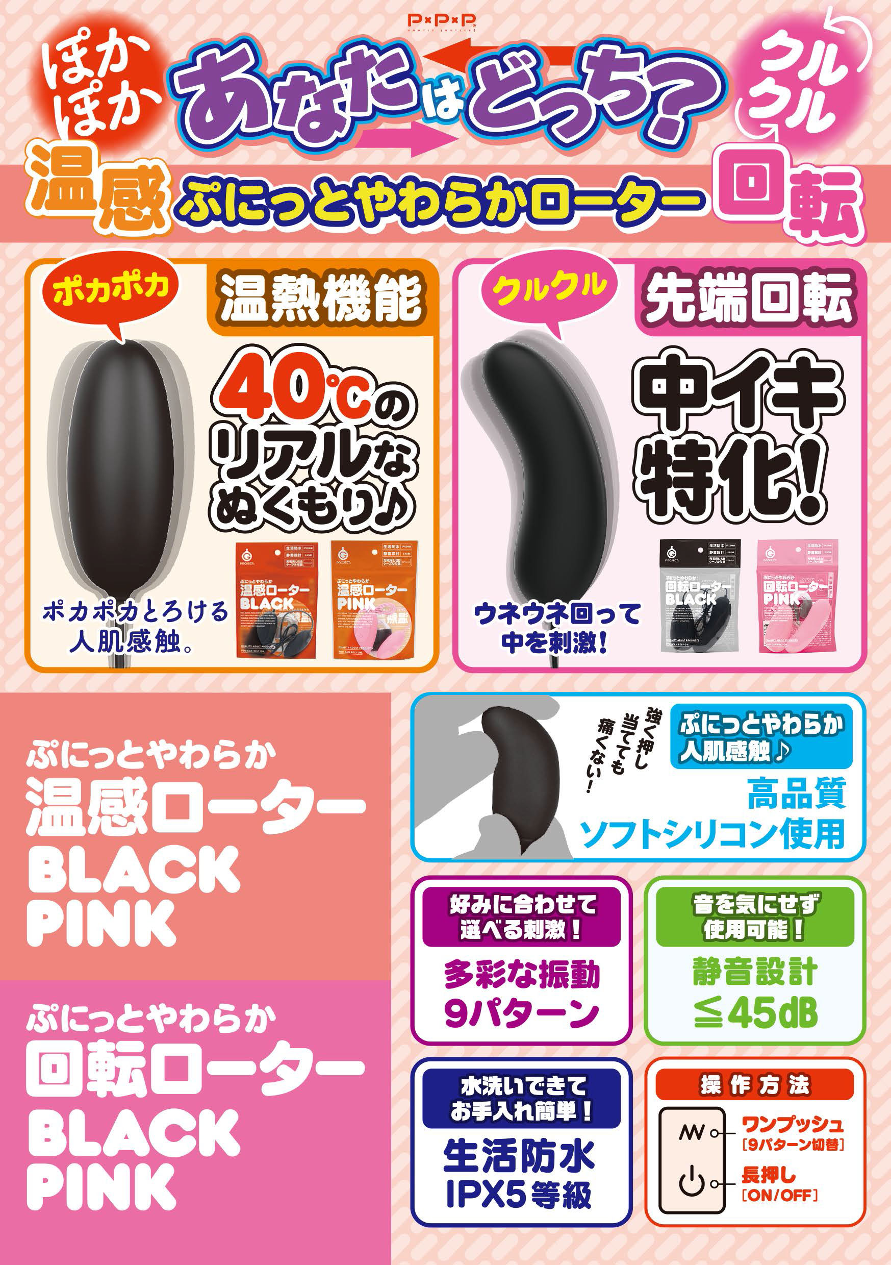 ぷにっとやわらか回転ローター!ふんわりとろける人肌感触のローター部分には、ソフトシリコンを内蔵しているので、強めに押し付けても痛くない優しい仕様になっています。直接肌に触れるものだから、さらさらすべすべの高品質シリコン使用しています。ホコリもつきにくい特別なコーティングを施しているので、いつでも清潔にご使用いただけます。ローターの先端部分がクルクル回転します。ソフトタッチな繊細振動から、パワフル悶絶振動まで、あらゆる場所をウネウネと刺激する中イキ特化型のローターです。様々な女性の好みに合わせた9つの振動パターンで誰でも超絶テクニック!?コード長65cmで色々なシチュエーションで使える広範囲仕様。パワフルなのに静かなモーター音は、周りを気にせず安心して使用できます。生活防水 IPX5。静音設計 ≦50db。付属品:USBマグネット式充電ケーブル検査番号:2301272
