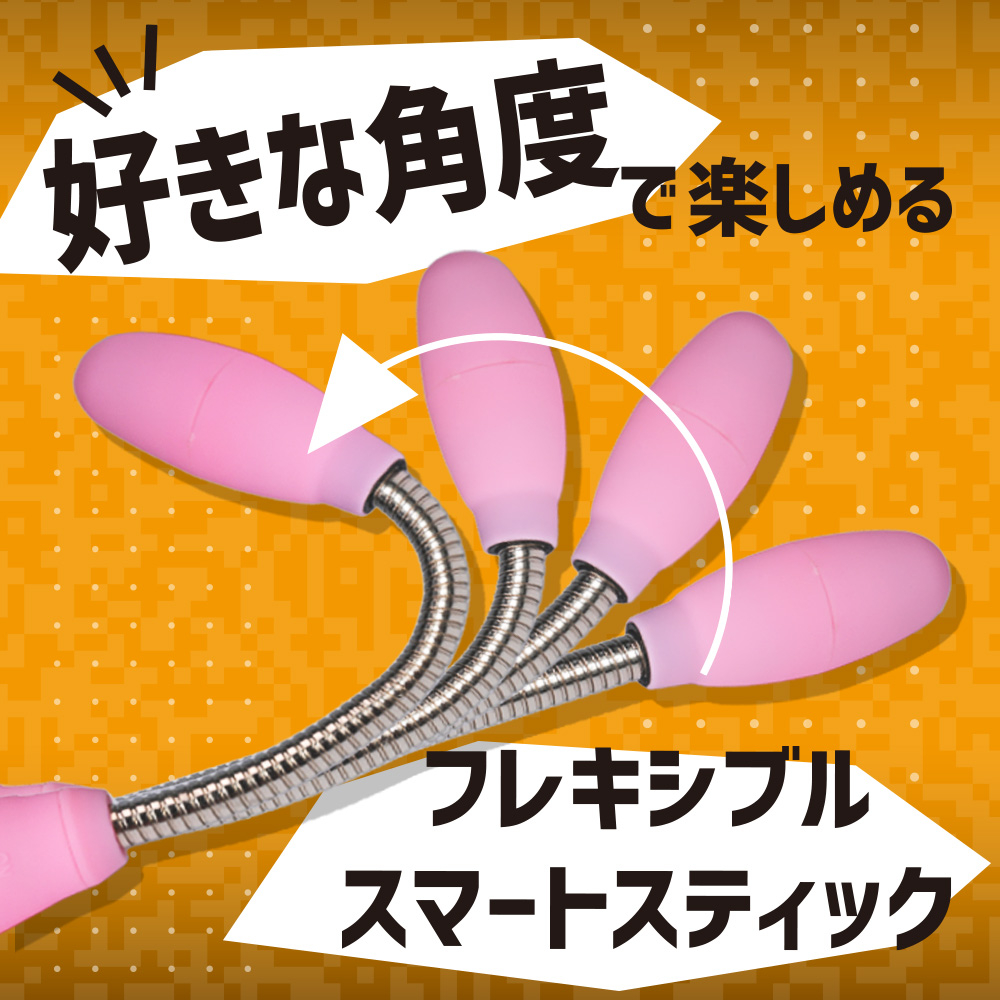 お好みの部位に好きな角度でピンポイント刺激出来るスマートスティック。フレキシブルに曲がる70mmのネックでスタイリッシュに楽しめます。スムースで優しい素材だから当て心地も◎。コンパクトな形状と簡単操作で振動するスティックマッサージャーです。