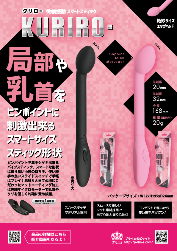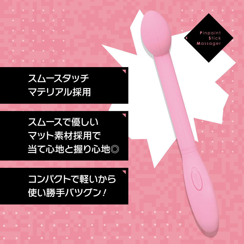 ピンポイントを集中シゲキ出来るバイブスティック。スマートな形状に握り易い小径の持ち手、使い勝手の良いスライドスイッチで手軽にプレイ!肌触りと当て心地にこだわったマットコーティング加工に先端マイクロモーターで乳首やク〇トリスを優しく的確に責め放題。