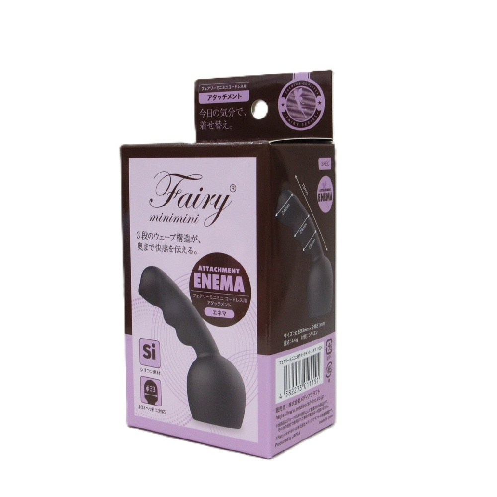 あのFairyシリーズが、新しくなって帰ってくる──。妖精の魔法ような小さなデンマ「フェアリーミニミニコードレス」に、アタッチメントが登場です。「フェアリーミニミニコードレス」に被せることで、より刺激的、より魅力的、より挑発的なエクスタシーへとアプローチ。まるで魔法のように、ラブプレイをもっとマジカルに大変身させます。汎用品ではない純正設計品ですので、高まるシナジー効果にご期待ください。「エ●マ」は、名前の通りアナル向けにデザインされたアクセサリー。3つの膨らみをもつウェーブラインがディープな刺激へと導くボディスタイルです。斜めになった本体角度はセルフの使い方にピッタリ。さらに、柔軟でしなやかなシリコン素材がどんな角度でもやさしくフィットします。ときめく魔法のような体験を楽しみましょう。
