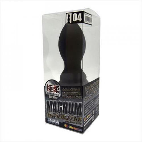 ブラックが冴えわたる本格派ディルドが、最新素材になって新登場!極上素材を採用した、「マグナム ウォーターシリコン」!黒い欲望を満足させる、エキスパートなボディライン。その魅力をそのままに、素材をグレードアップしました。シリコンを超える進化素材。超しっとり、凄なめらか、快感度を追求した進化素材、それがこのウォーターシリコン素材なのです。しっとりきめ細やかな質感に、生々しい生体的な肉感弾力、人体や環境にも優しい安心材料。アダルトグッズのステージを高めべく進化したマテリアルです。熟練者向けのマニアな形状に、極上の肉々しさをプラスした、ゴージャスなディルドです。調教や拡張などのハードコアでエクストリームなプレイにぴったりなシリーズとなりました。「MAGNUM」の名の通り、パワーあふれる快感をご体験ください。「04」は、太さ4〜6センチのプラグ型フォルム。二段階の搾りスポットをもつ、斬新な挿入感!