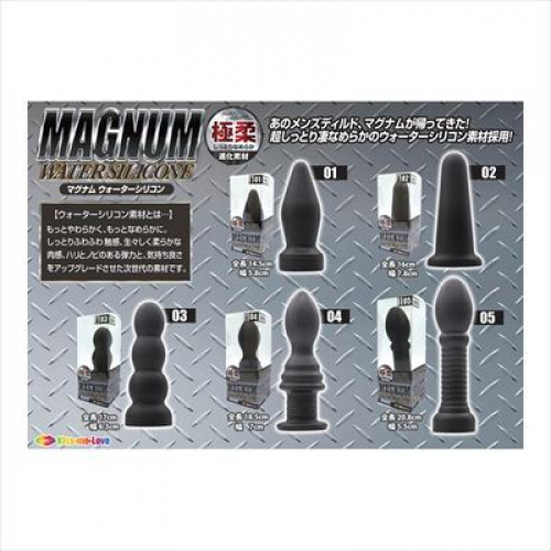 ブラックが冴えわたる本格派ディルドが、最新素材になって新登場!極上素材を採用した、「マグナム ウォーターシリコン」!黒い欲望を満足させる、エキスパートなボディライン。その魅力をそのままに、素材をグレードアップしました。シリコンを超える進化素材。超しっとり、凄なめらか、快感度を追求した進化素材、それがこのウォーターシリコン素材なのです。しっとりきめ細やかな質感に、生々しい生体的な肉感弾力、人体や環境にも優しい安心材料。アダルトグッズのステージを高めべく進化したマテリアルです。熟練者向けのマニアな形状に、極上の肉々しさをプラスした、ゴージャスなディルドです。調教や拡張などのハードコアでエクストリームなプレイにぴったりなシリーズとなりました。「MAGNUM」の名の通り、パワーあふれる快感をご体験ください。「05」は、太さ3〜5センチのドング型フォルム。強い刺激の灯篭フォルムが、新しい快感を引き出す!
