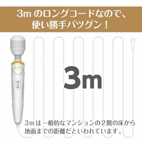 3mのロングタイプコードで、電池切れの心配も無くハイパワー振動をお楽しみ頂けます。