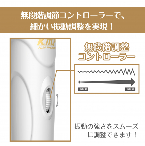 振動強度を自在に操るダイヤル式で、微細振動から貫くような激震動まで無段階に制御可能です。