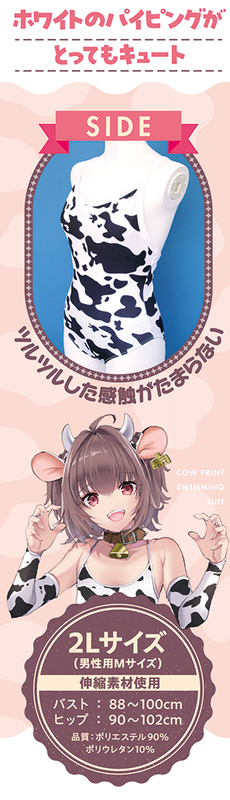 牛柄コスチュームで、野生の魅力を解き放て! あなたの中のメス牛が疼きだす 正統派スクール水着タイプ ホワイトのパイピングがとってもキュート ツルツルした感触がたまらない ピチピチのフィット感 最高の着心地が体験できる 伸縮性抜群! 2Lサイズ(男性用Mサイズ) 伸縮素材使用 バスト 88〜100cm ヒップ 90〜102cm 品質:ポリエステル90% ポリウレタン10%